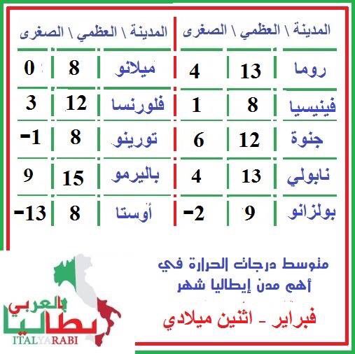 ايطاليا بالعربي Sur Twitter متوسط درجات الحرارة لمدن ايطاليا في شهر فبراير ٢ ميلادي Freeedooom5 Seyaha Europe T0urism A Kh15 Https T Co Nnwknlcmhr