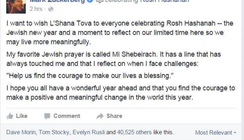 مؤسس موقع التواصل الاجتماعي الاكبر فيسبوك مارك زوكربيرج يهنئ اليهود بالعام اليهودي الجديد موقع رام الله الإخباري